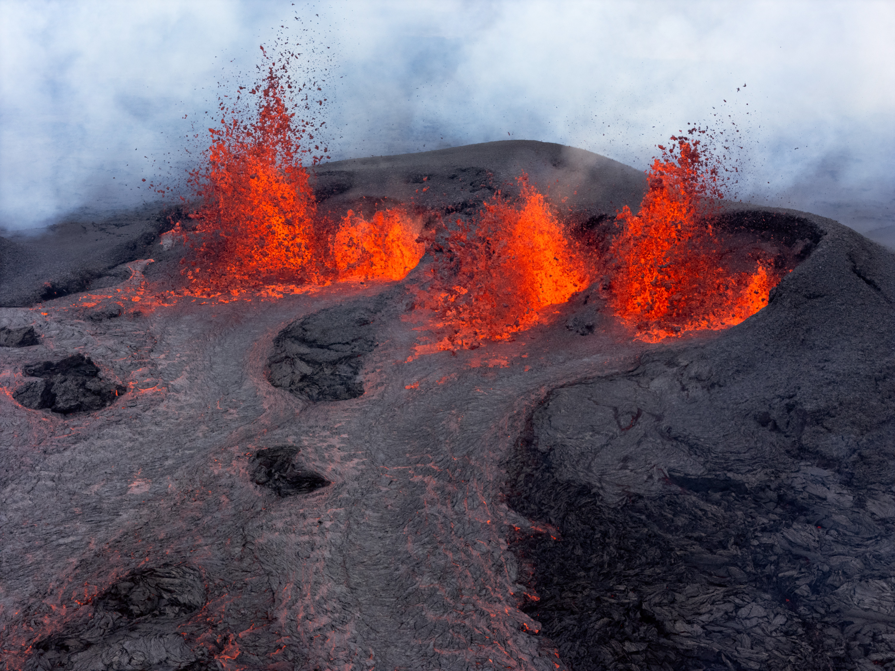 - artist notesWhen the eruptions began, police closed all of the roads to the region, but I felt compelled to see how close one could get. Then suddenly the police left and there were no restrictions. It was late at night (in the endless days of summer) but those of us who were left ventured as close as we could go to observe and photograph.
